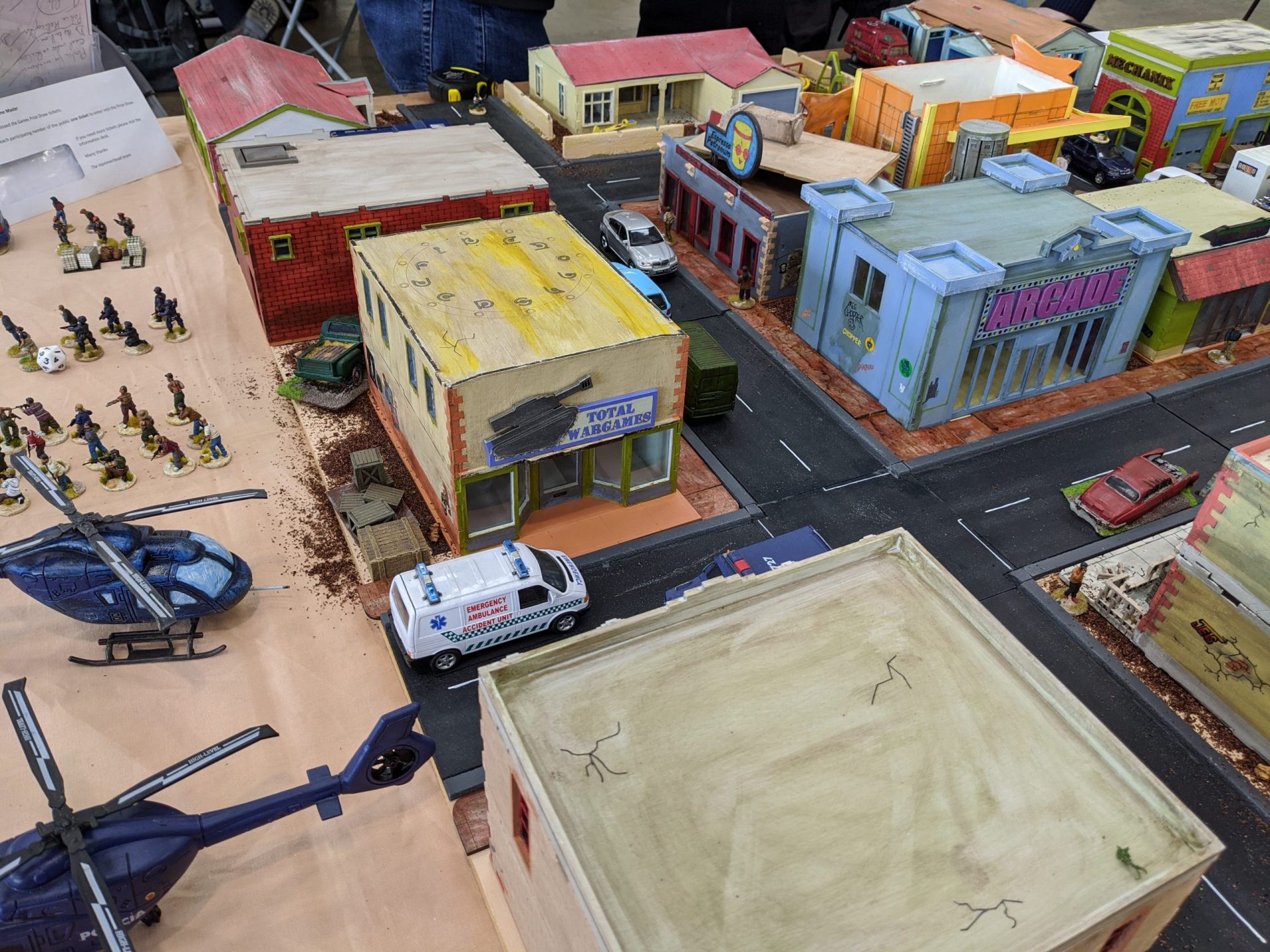 This weekend was Hammerhead and, being back in the area, I decided to take a trip. Turning up late in the day (with the shadow of coronavirus hanging over everyone) it definitely felt quiet. After speaking to a few people, I finally managed to meet up with Westbury Wargamers, a rather fine chap and reader of this blog (and someone who I have probably pushed down many a purchasing hole). That said, the game that he was running with a few others was a rather fun looking Mexican Cartel game, using the fistful of lead rules (fitting onto a single piece of A4) and looked like a whale of a time was being had by those playing.