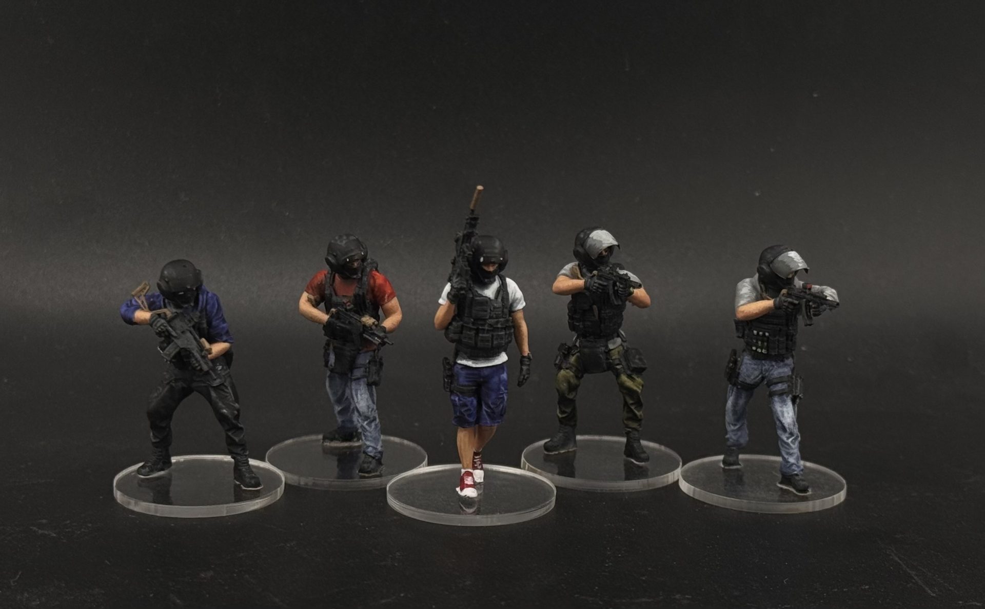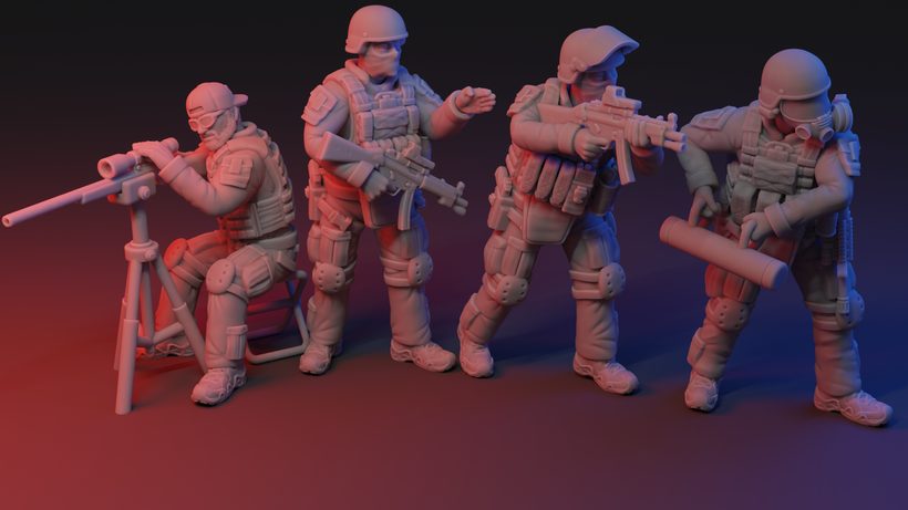 Fresh from the Ultramodern Wargaming Discord, Don’t Drink and Paint (the maker of some fantastic kitbashes over on Instagram) has released some Ultramodern figures. This first set of GSG9 Officers, dressed in civilian clothing and tactical gear (including the classic AM-95 helmet) and rolling with visor stock-equipped MP5s and G36s. These are some good-looking figures, although do be aware that these are designed for printing at 32mm and so may be a little on the delicate side. However, the good news is that these aren’t the only figures that he’s working on – a second set of GSG9 Officers, still in the AM-95 helmet but instead in full tactical gear. If you want a set of these for yourself, they are available over on Cults3d.
