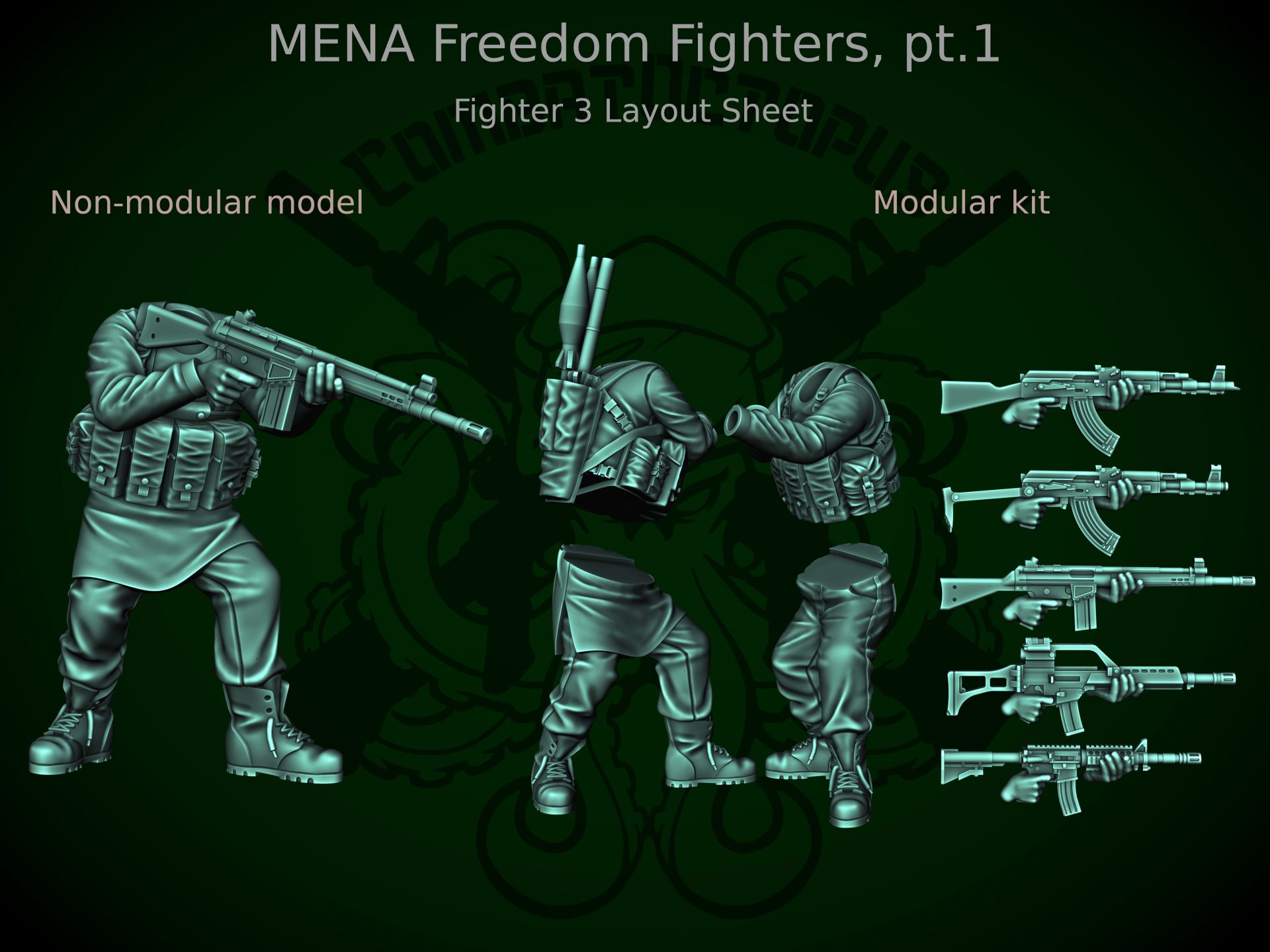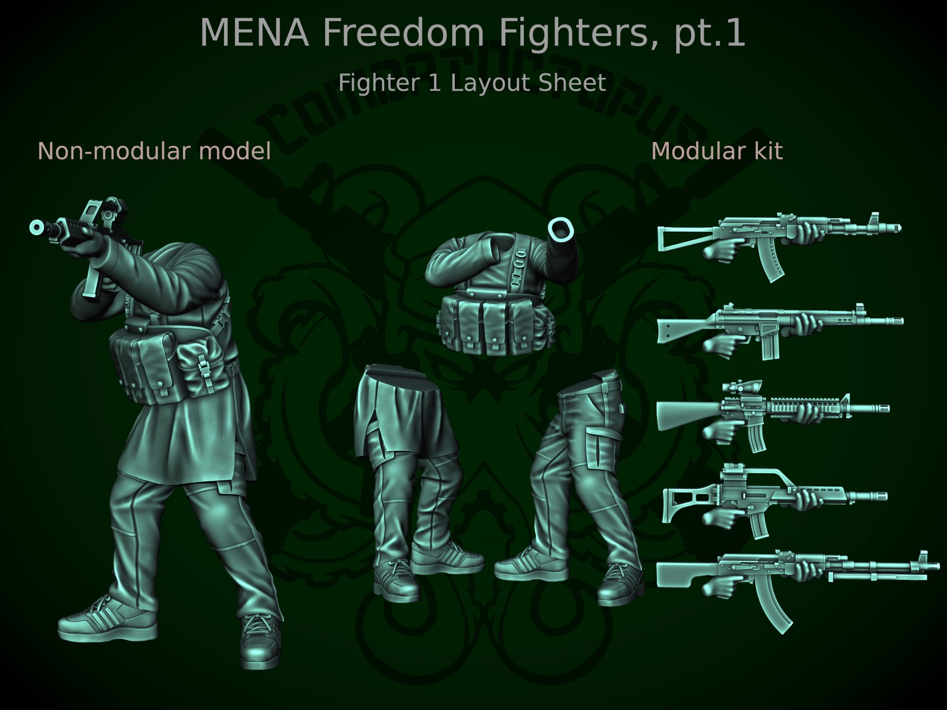 After being previously shown off when the files were complete, Combat Octopus‘s latest releases came out on the 2nd of October. The MENA Freedom Fighters set is intended to represent the wide selection of irregular forces from the MENA region, mixing both local clothing with chest rigs and weaponry. As you can see from the previews below, this set includes multiple weapon families, making them ideal for showing off the wide selection of gear that has ended up in that part of the world. And yes, that does include an M4 with no optics or rear sights.
