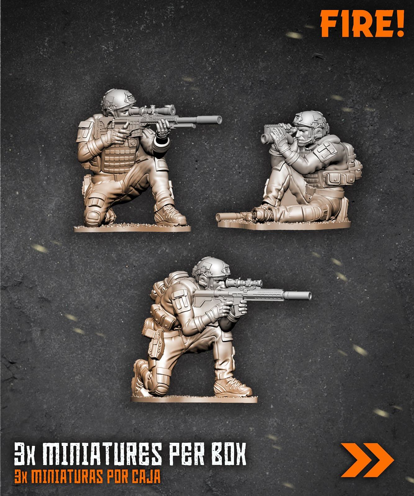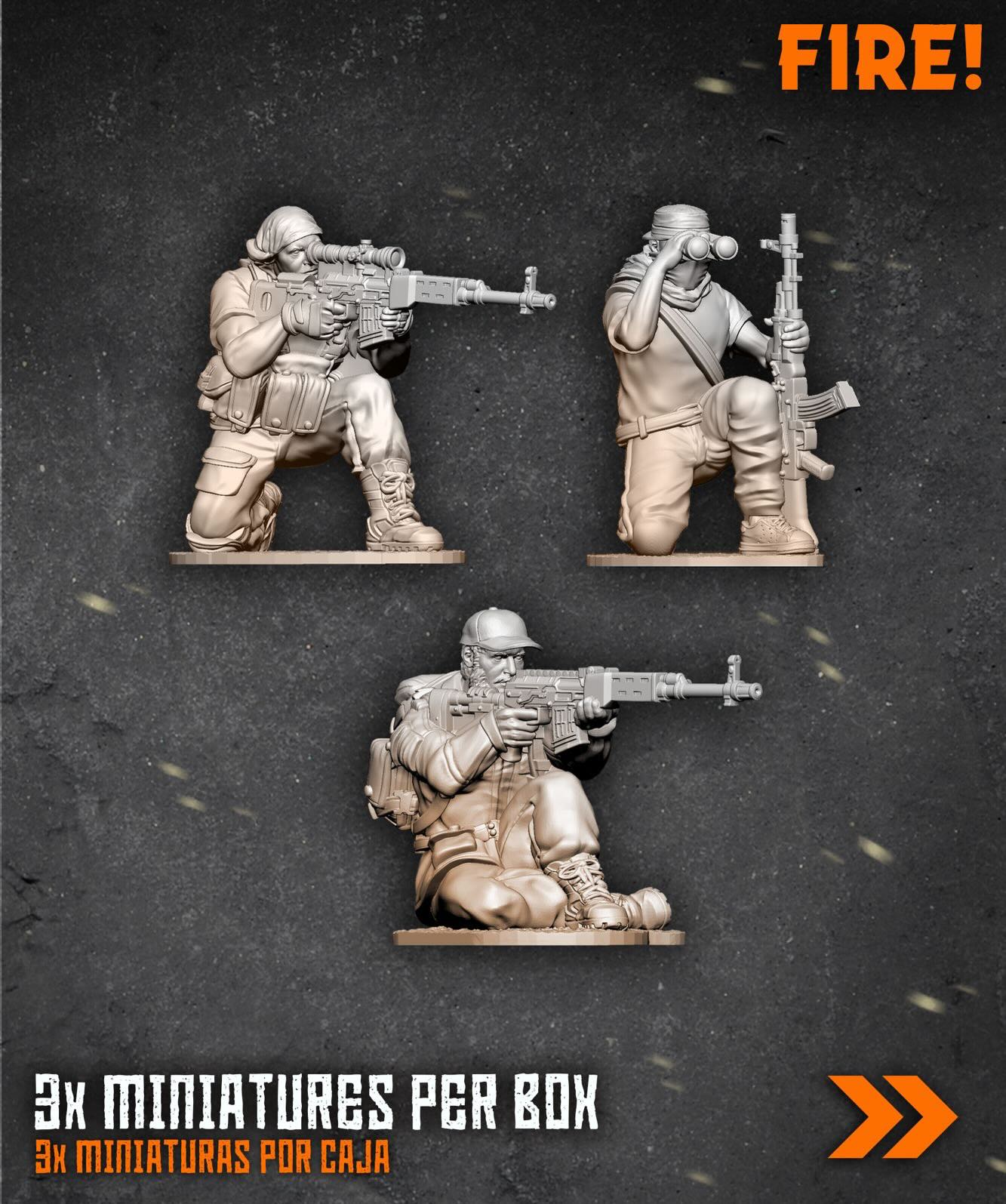 Fire! Modern Combat launched their new website last week, and I missed out on a key part of the announcement – the first three parks are up for a limited pre-sale. The Civilian VIP pack, Insurgent Marksmen and US Rangers Marksmen are currently available for a limited time pre-sale, which finishes on 03/12/25 at 23:59h (GMT +2 -Spain). All three sets come in white metal and will hopefully be dispatched just before Christmas. I’m assuming these figures will be available later, after the pre-sale is over (perhaps with a little delay), but I will provide more updates when I find out more.