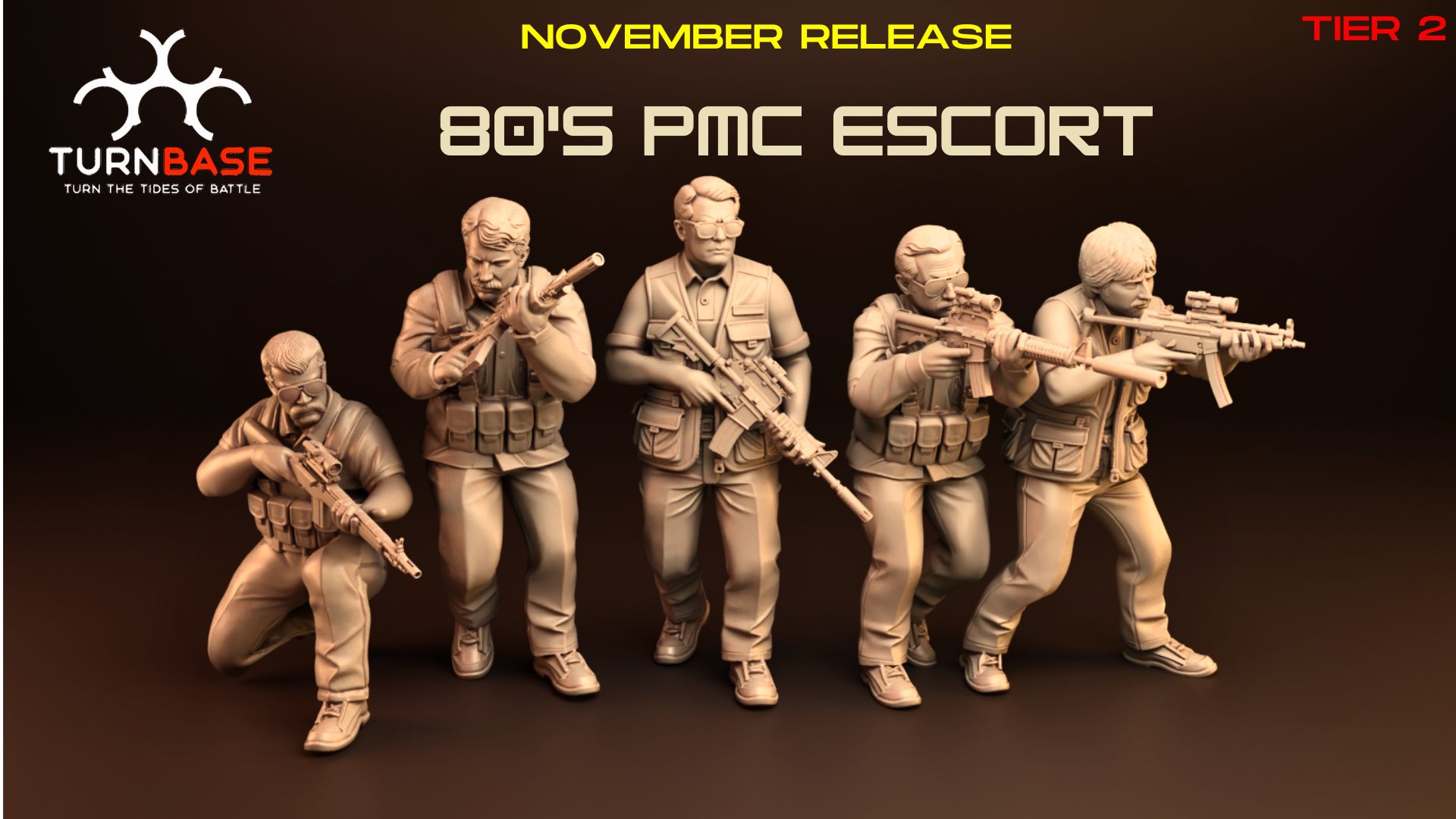 Finally, for this week, Turnbase Miniatures has dropped their preview for November’s release (which has been slightly delayed into December). This set is listed as 80’s PMC, but they are definitely inspired more by images of Delta Force in the 1990s protecting General Schwarzkopf. The set includes three AR15s, an MP5 and a short M14. No news when this set (or the Tier 3 set) is being released, but it should be relatively soon.
