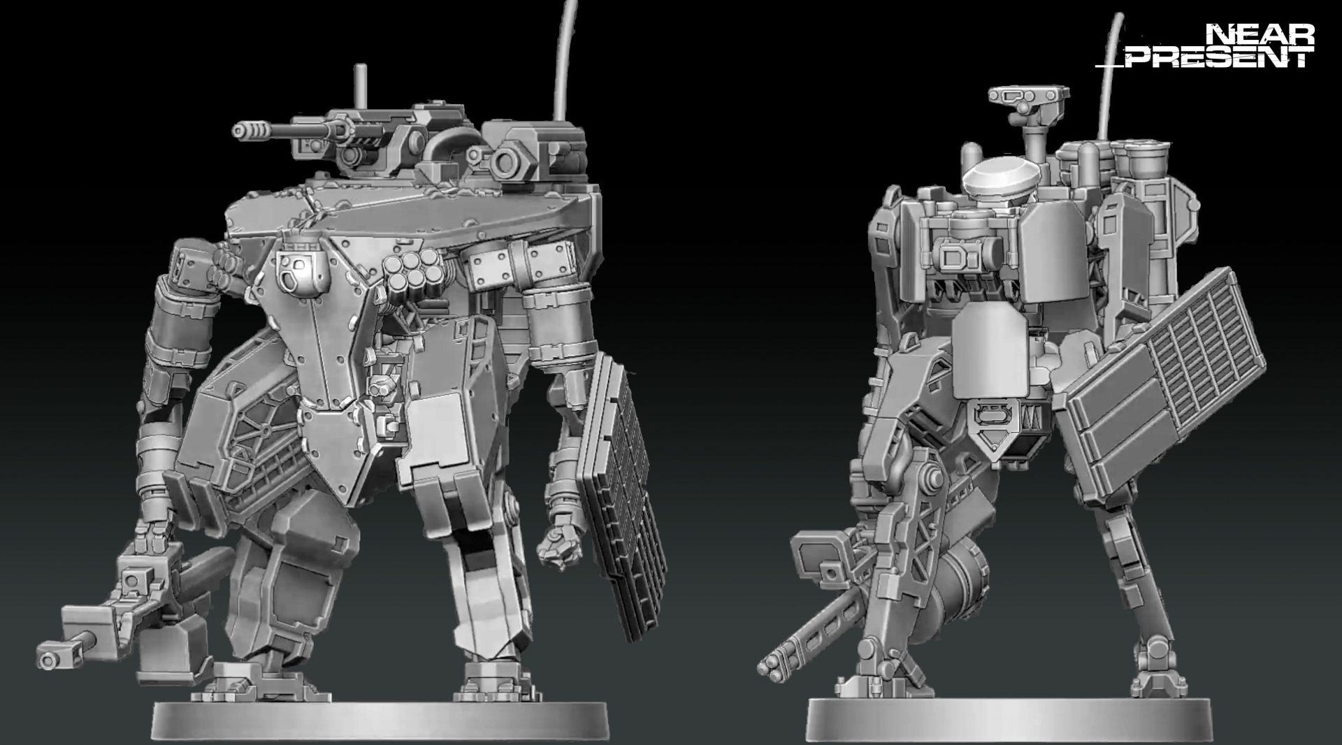 Fresh off soft-launching Near Present, Echelon Software has released the first figures for this new game. The Collaborative Combat Troop are the most visible departure from the modern day in the 2046 setting, giving both sides slightly larger than man-sized automated weapon platforms (or large stompy boys) to provide fire support without needing vulnerable vehicles or static weapon teams. The larger Hound CCT provides multiple weapons to support the western mercs of Anchorage, while the smaller ZQ44 is treated as a disposable asset by the eastern fighters belonging to China’s Hankou. Both of these vehicles are now available from the Echelon store, each arriving as a multiple-part kit. I think these suits are great, providing something new on the table and with an awesome design – it’s also very promising for when we see more figures for this setting in the new year.