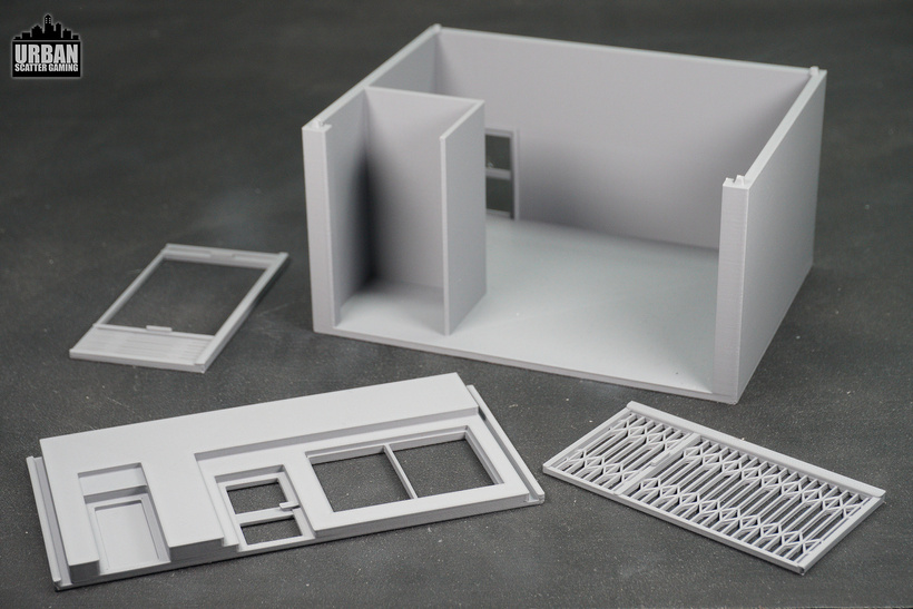 As you can see here, the ground floor has a separate front piece that can be removed and swapped with potential alternatives (great if you want a nondescript and detailed version. The upper floors give you more playable space but, as with many of USG’s buildings, also include some cleverly designed supports integrated into the model that can be easily popped out after printing.
