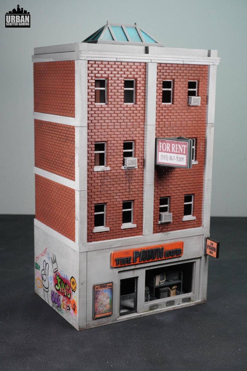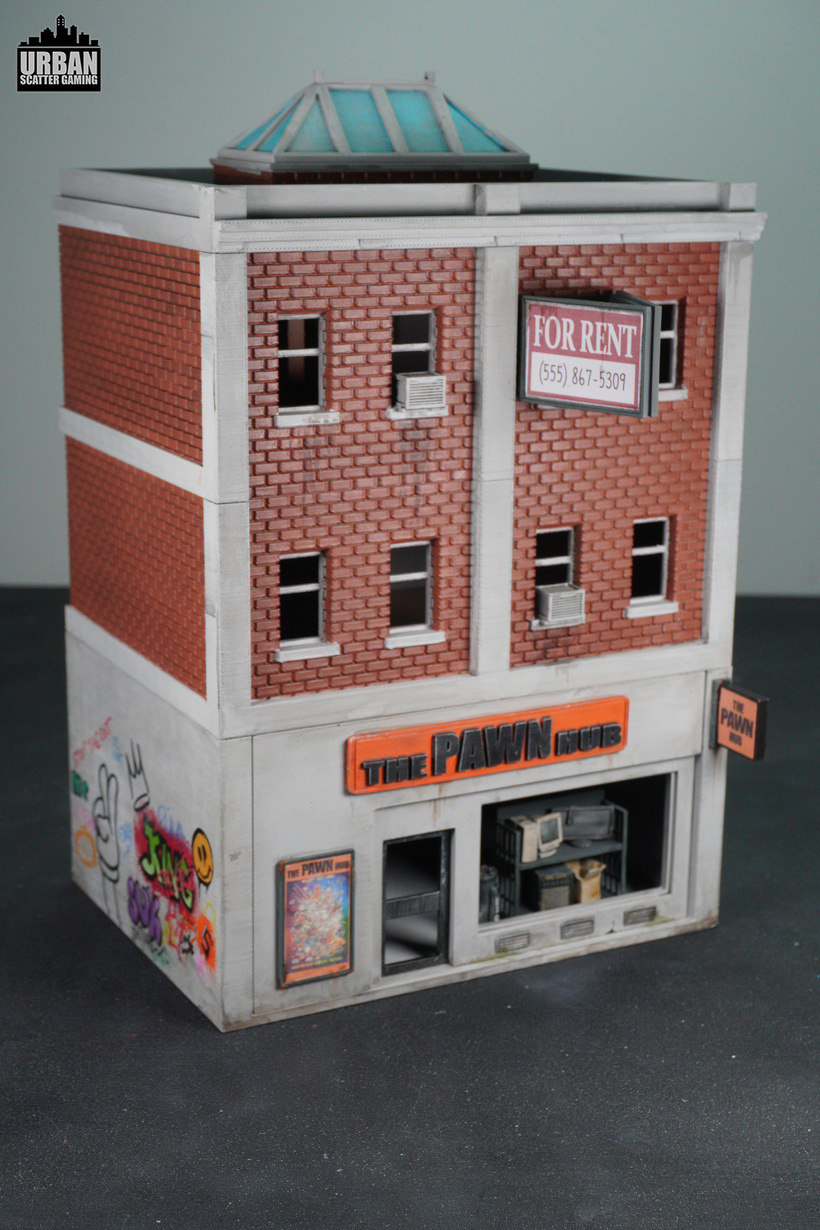 Mere Days after my final edition of The News Stand for the year, Urban Scatter Gaming went in-depth with the next release for his urban range. Following on from the corner jewellery store and previously previewed unpainted, we now have a multi-storey apartment building with a retail unit on the ground floor.