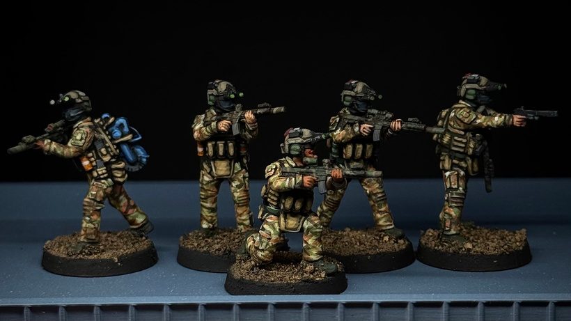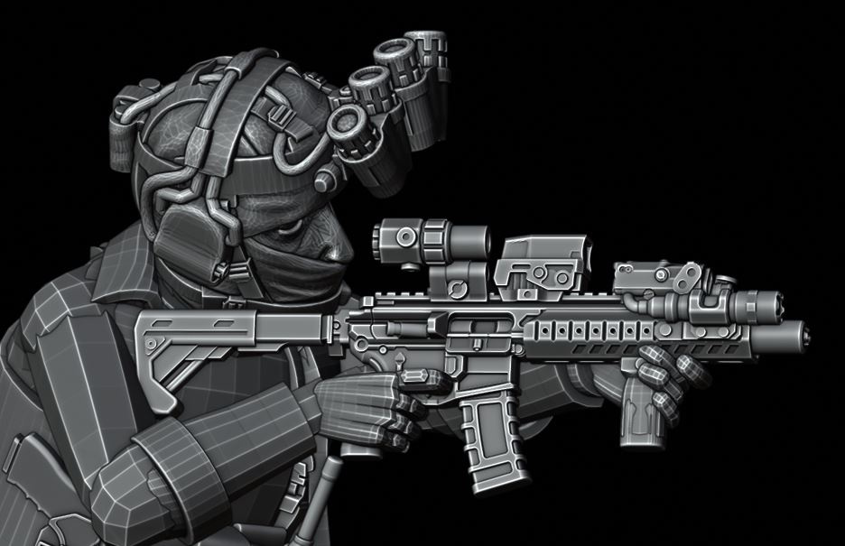 For the Miniatures’ tier, this month’s release is a set of Generic Western Special Forces. Armed with AR-15s with all the toys, the set includes a mixture of Assaulters, a Marksman and a Breacher with a circular saw on its back. They are all covered in all the pouches and gear, and looking pretty good. Additionally, the set comes with five heads, all with NVGs in various states and with either a covered face or a selection of bare faces. This is just the first set, with a matching set coming next month.