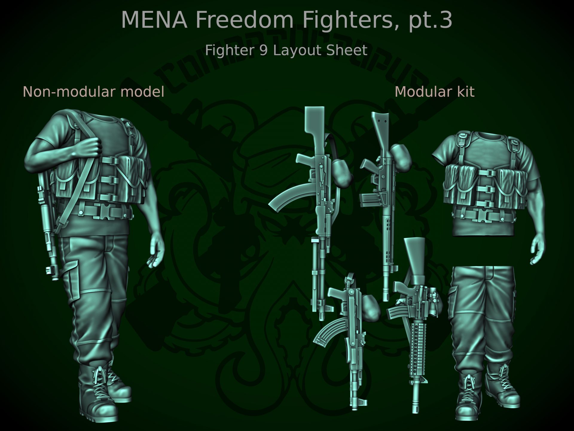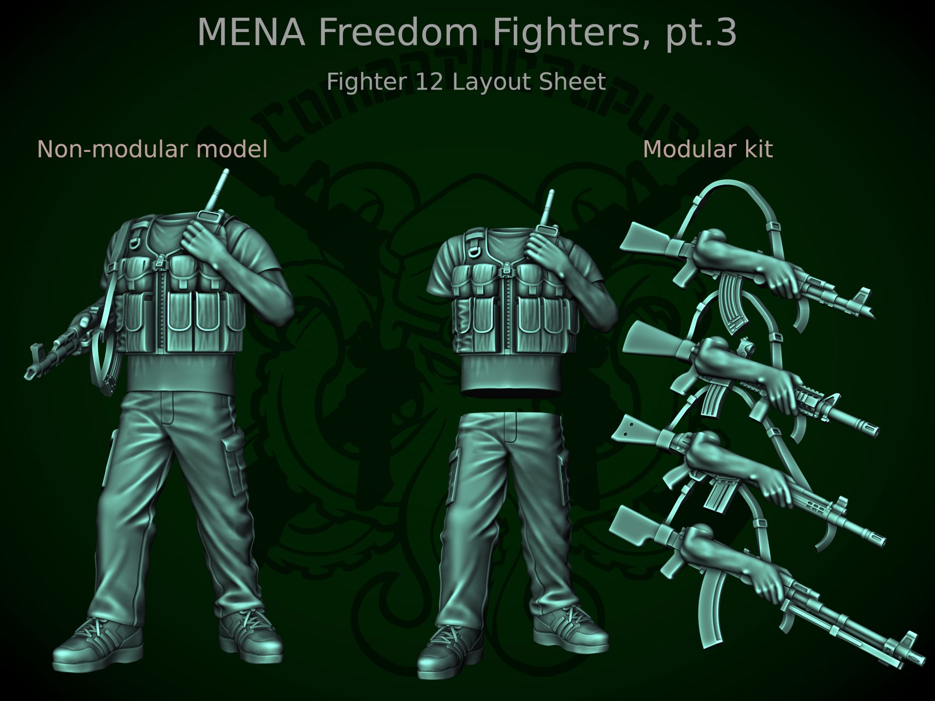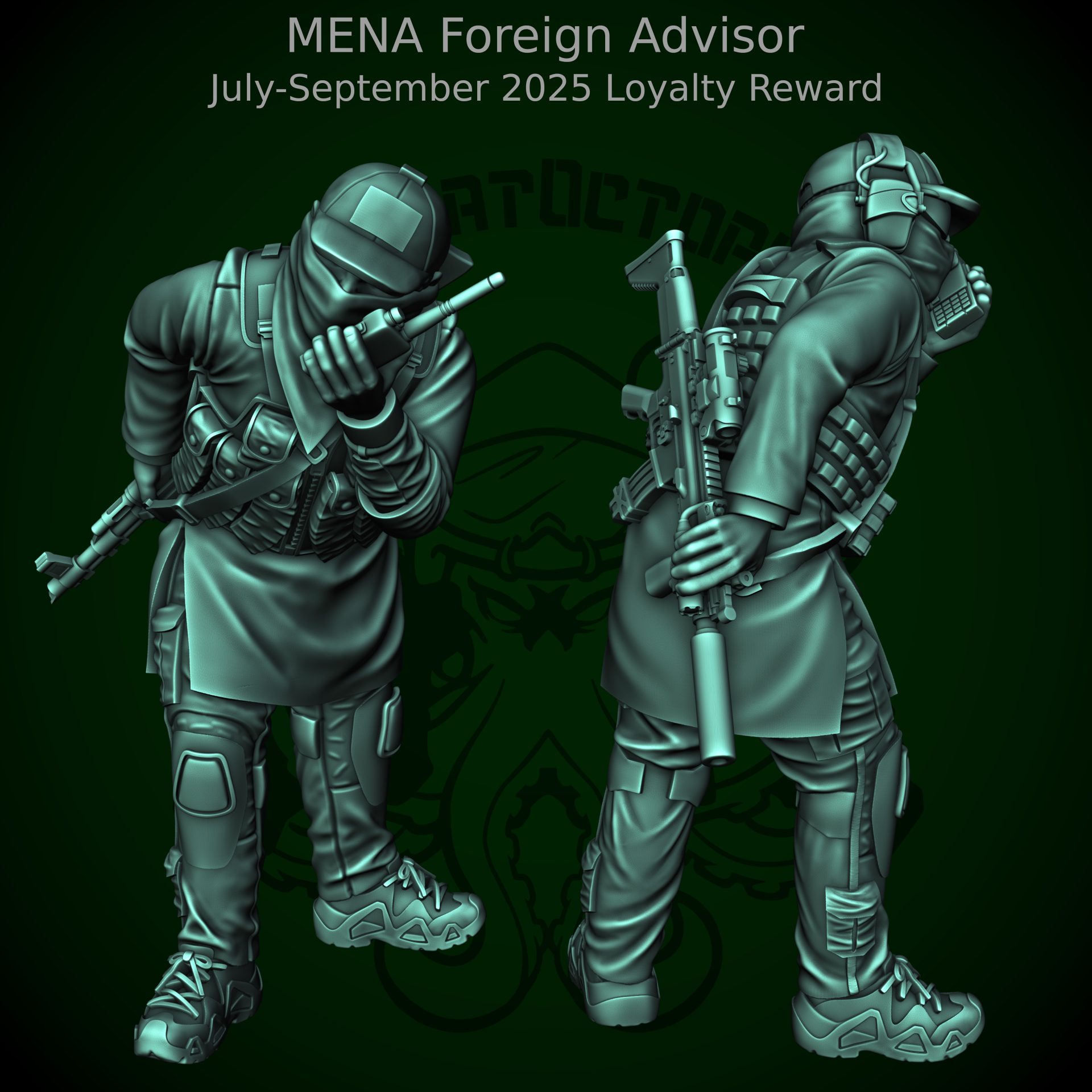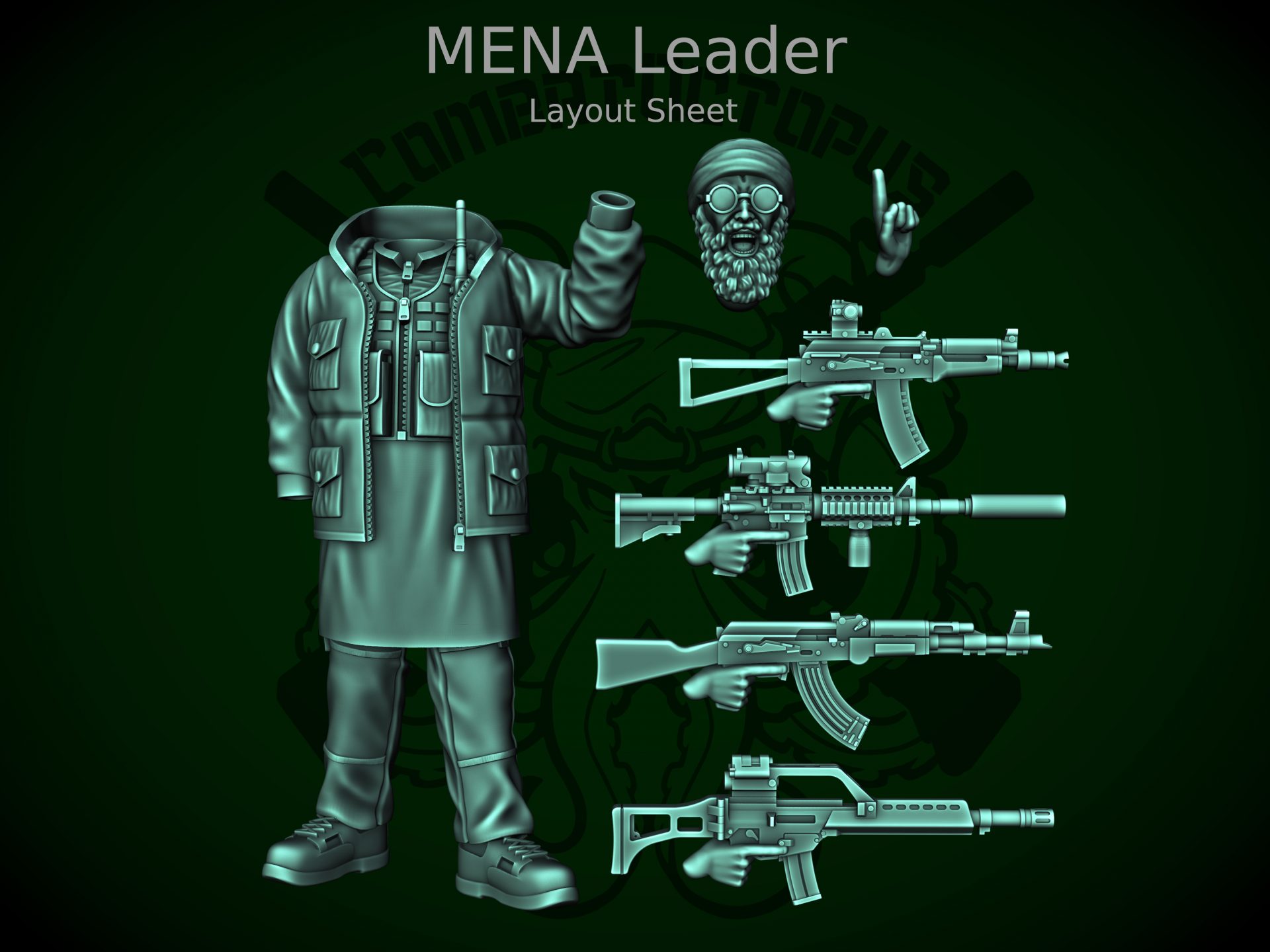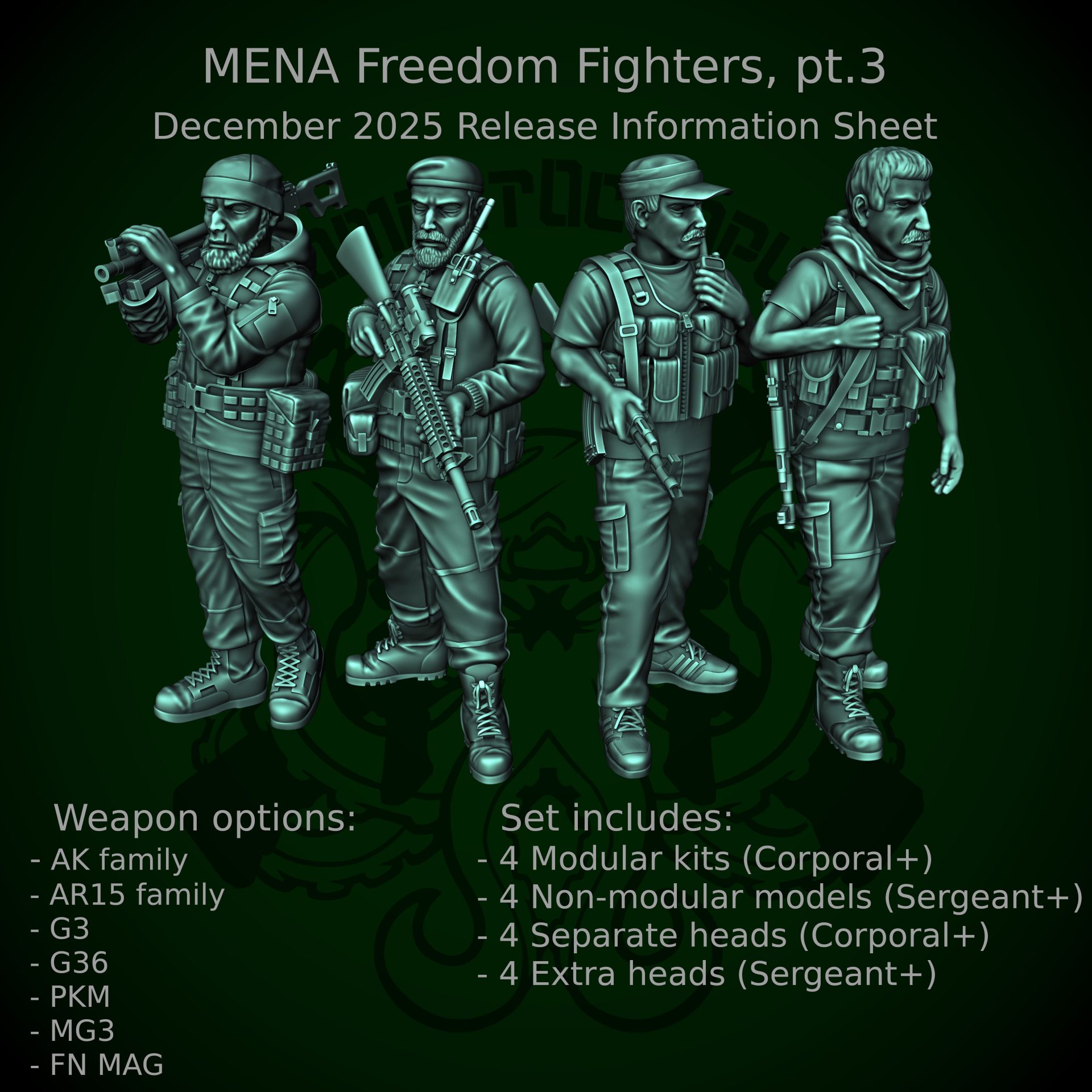 Of course, the ideal accompaniment to your MENA force is a suitable leader figure, and the loyalty reward for October-December 2025 was just the ticket. This guy is mixing local clothing with a smock, chest rig and round glasses. The weapon options also offer the same mix as the main set, with two AKs, an M4 and a G36 to let you theme your force. This figure is already on the Combat Octopus MyMiniFactory.
