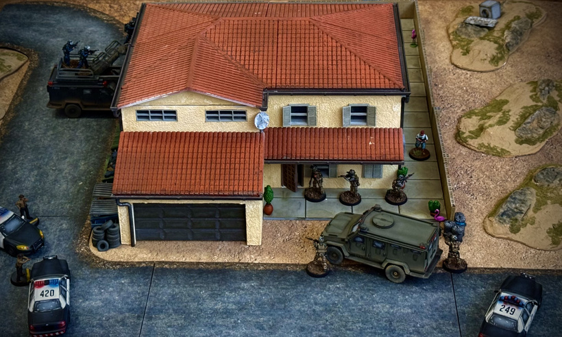 To match with his usual prompt delivery of new pieces, Modern Miniatures has a new set of previews up for his February release. In a scene very reminiscent of the opening to a certain film I’m sure many Ultramodern gamers like, we see the house being raided by Law Enforcement. The house is looking great with plenty of details that will be sold alongside it, such as a pool set for the terrace. It’s safe to say that this house is still going to be a great release on Patreon but there are a considerable number of paid items (such as the plant pots, the interior details for each room and now the pool add-on) to bring it up to the level shown in the preview images, for better or worse. If you want more previews, you can find a full post on the Modern Miniatures Patreon, with a full preview coming later on the 31st of January.