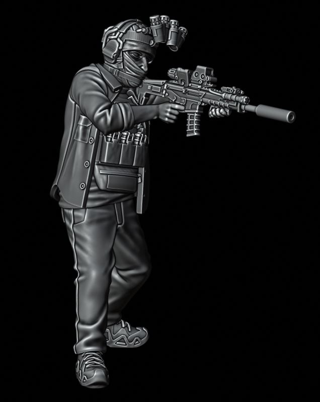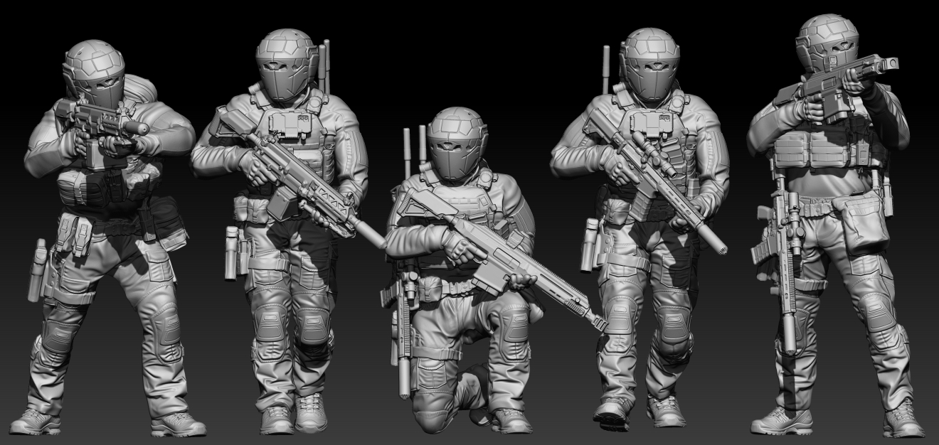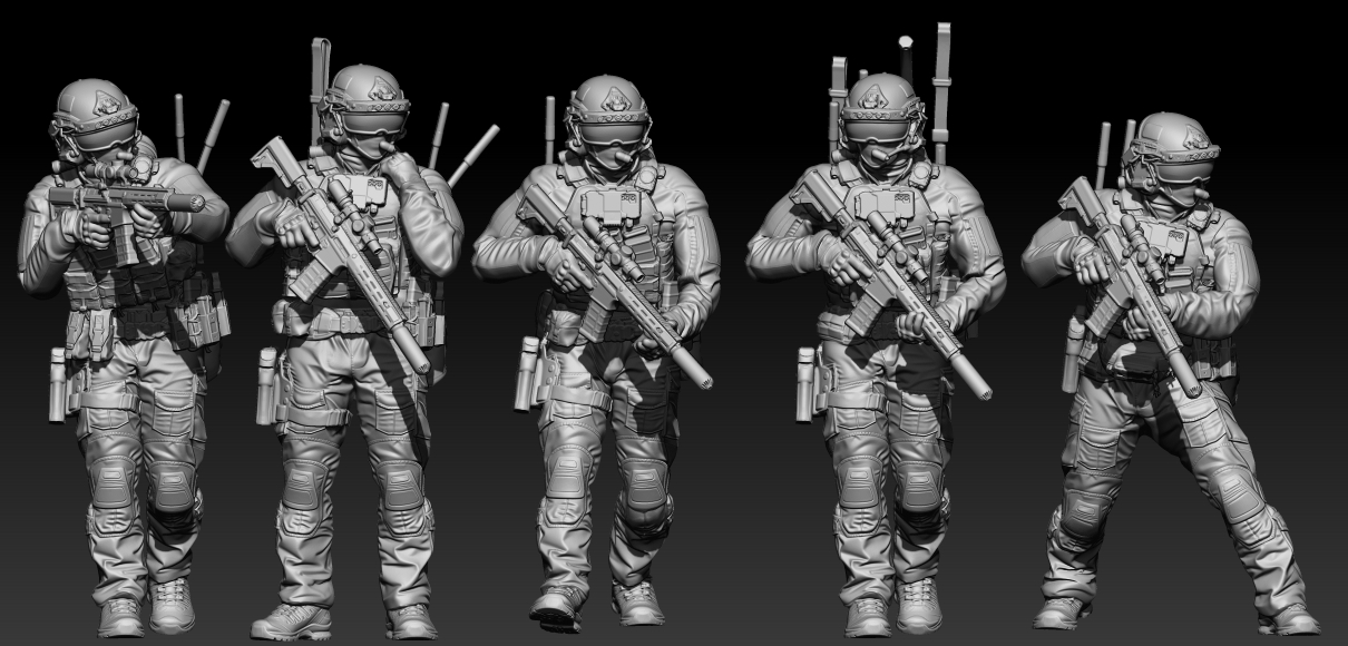 Another update from Combat Octopus as he works through Western Deniables Part 2. This time, we have an operator shooting off their left shoulder, ideal for peeking corners (or confusing Tarkov players with a questionable key bind). There are a few more neat touches to this guy to set him apart from the rest, helping the squad to look consistent in the big picture and diverse in the details. We also have an update on the final pose: a Leader operating his smartphone tactical display with a rifle slung. Combat Ocotopus has done a good job getting back on track after his break last year, so we may see the release sooner rather than later.