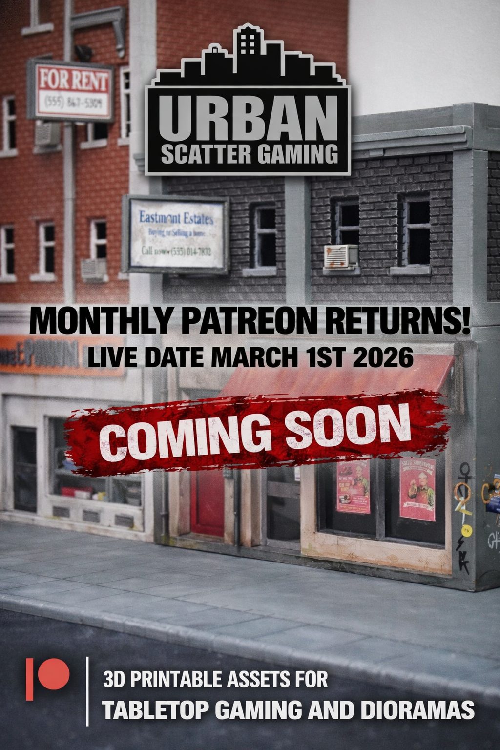 Busy week from Urban Scatter Gaming with a trio of news items. First up, chasing after the MENA releases from last year, we have the new Date Palms and Bases set. Ideal for filling out MENA areas as either area terrain of light cover or single detail pieces to turn your city streets into something a little less dustry tan. The set is designed for filament printing, with 4 different palm sizes and a set of 6 scenic bases to show the area. In something I continue to like, this set also received a painting guide to show how they can look, perfect for getting started with. If you want this set for yourself, it’s available over on the USG Gumroad.