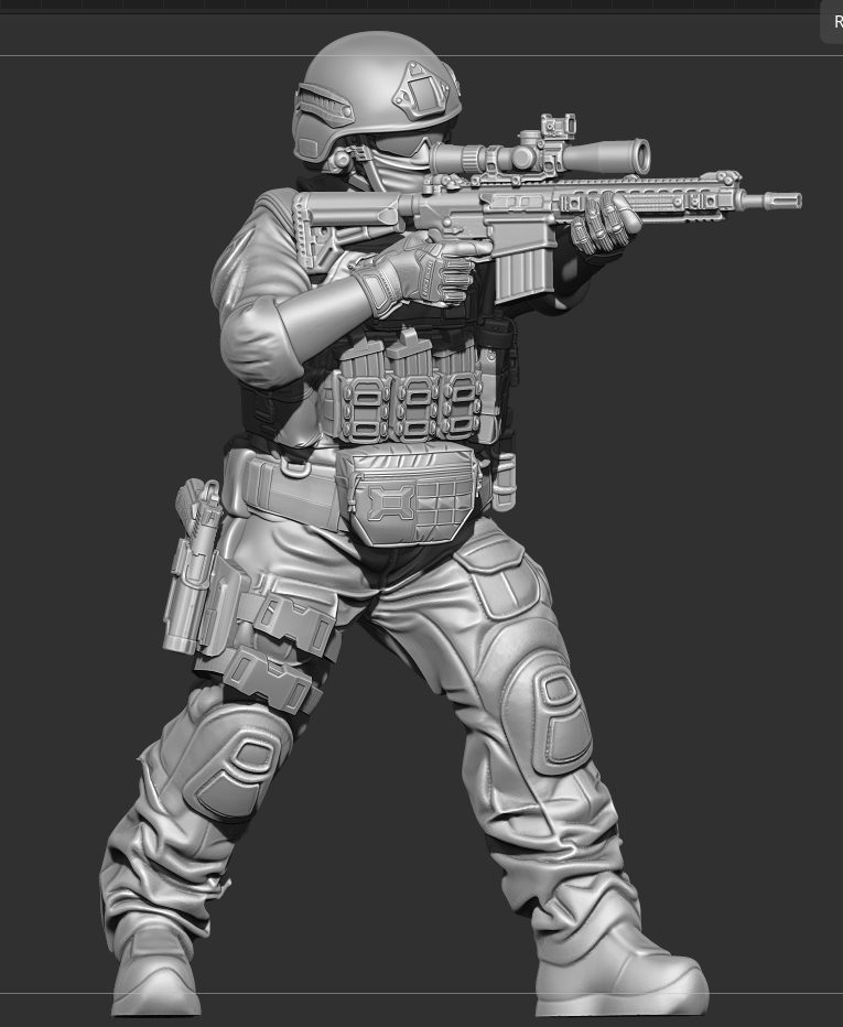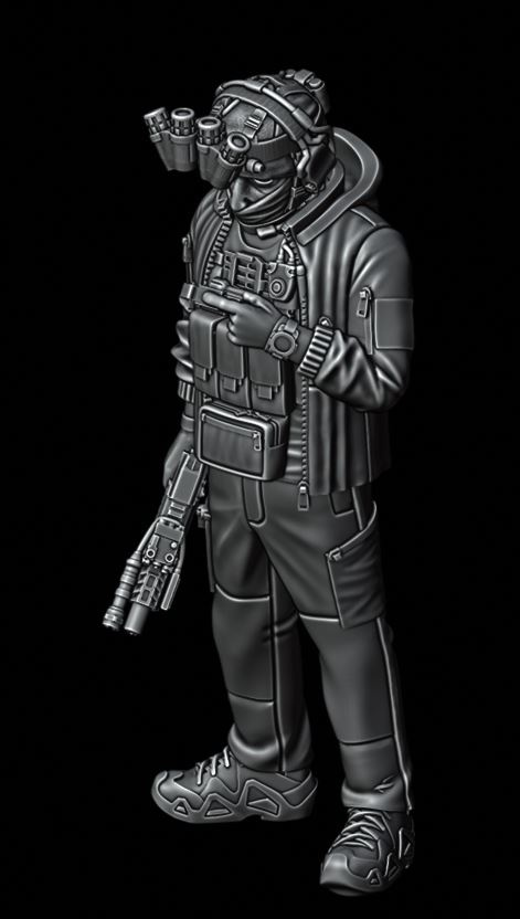 Working to get himself back to his usual schedule, Combat Octopus has been hammering through the preparation for part 2 of the Western Deniables release. As you can see above, we have the final pose for the release, with this operator checking his chest-mounted smart device for a tactical advantage (or catching up on the ChargeBlog Patreon). As with all Combat Octopus poses, the weapon is going to come with plenty of options and a separate head should let you decide what level of beard your operator is going to be.