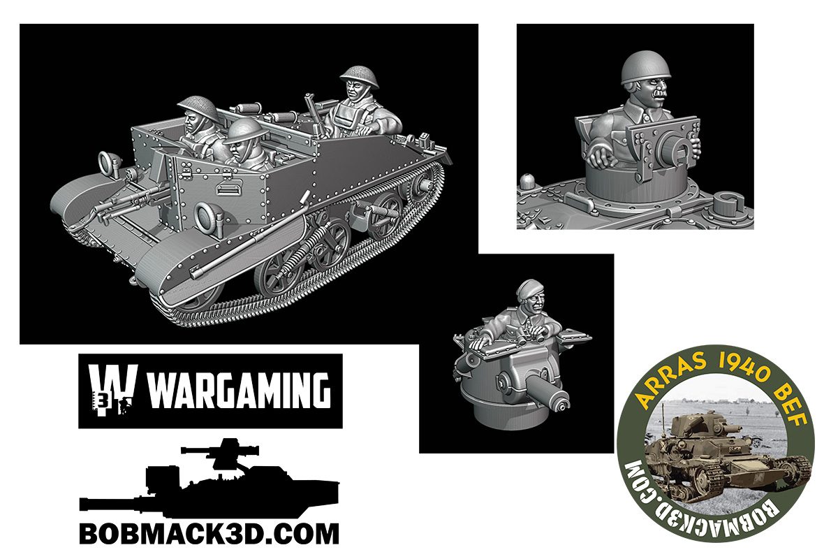BobMack3d (in the midst of preparing for the Arras 1940 Kickstarter launch in three weeks’ time) has shown off the Bren Carrier, which will be one of the vehicles included. And yes, that’s the original Bren Carrier, before the introduction of the far more popular Universal Carrier in 1940 (presumably after many of the original ones found themselves left behind after Dunkirk). This earlier vehicle is far less armoured but unique for the time period, perfect for selling the look of a 1940s battlefield.