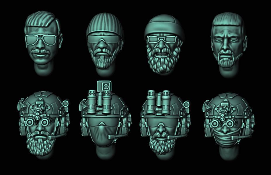 And speaking of beard, this month’s set of heads comes with the same combination of non-tactical and tactical heads. This month’s tacticals come with the latest in Ops Core ballistic protection (complete with AMP headset and PVS-31 NVGs), while the non-tactical heads include some options for law enforcement or low-profile shennighans.