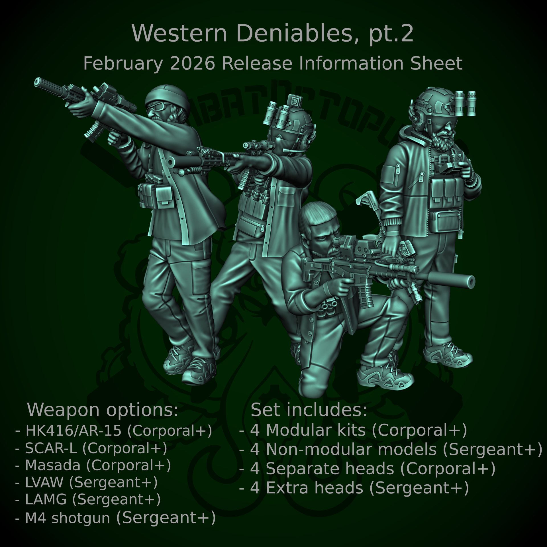 This release is currently out on the Combat Octopus Patreon and will be available until the end of the month. If you want the first set of Deniables, they are now out over on MyMiniFactory.