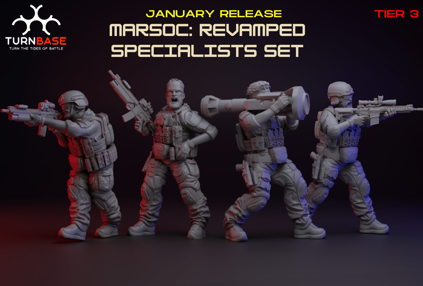 Finally, for Ultramoderns, Turnbase Miniatures has released January’s files to Patreon backers. The theme was a revamped set of figures for MARSOC (one of Turnbase’s original releases). Tier 2 backers received the core set, bringing five operators with MK18s, Mk46 and one figure with M45 drawn. For Tier 3 backers, the Specialist set was added, including two figures with M203s fitted, an SR25 EM Carbine and a figure firing an NLAW. There are also two sets of separate heads to use on the figures, including two styles of more characterful heads with the specialists. These sets should be out to Patrons now, with an MMF release coming soon.