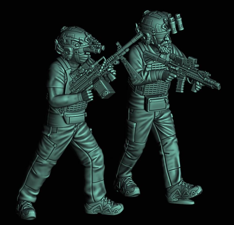 The CIA Enabler Team is a smaller element designed to act as a force multiplier for other forces, providing intelligence and remote fires support. This is helped out by all the figures carrying additional loitering devices on their back, including the Switchblade and launcher to deliver an explosive payload to the target. These figures also have some really gucci weapons and equipment, including MCX Rattlers, Geissele MRGG-S and even an M320 with a Pike Smart Guided Missile. This set is available as both physical sets and STLs, and it also doesn’t include the AR Goggles shown on the figures (you’ll have to buy them separately).