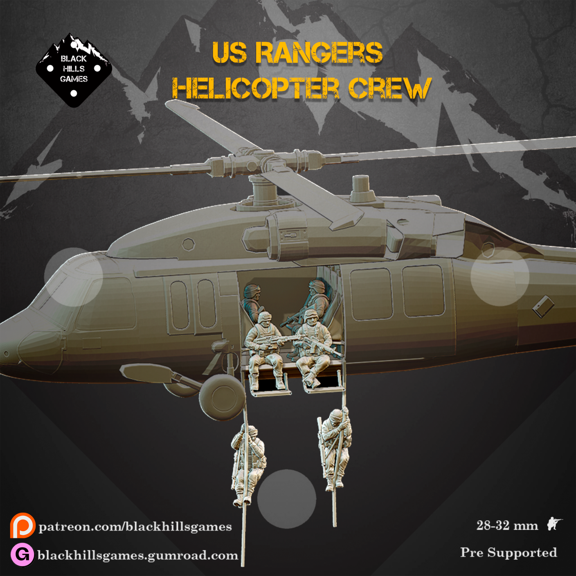 Black Hills Games has shown off some previews for pieces being released soon, acting as an expansion for the January release. To expand the US Rangers from Somalia, this set is going to give you all the bits you need to bring them onto the battlefield – quite literally in this case.