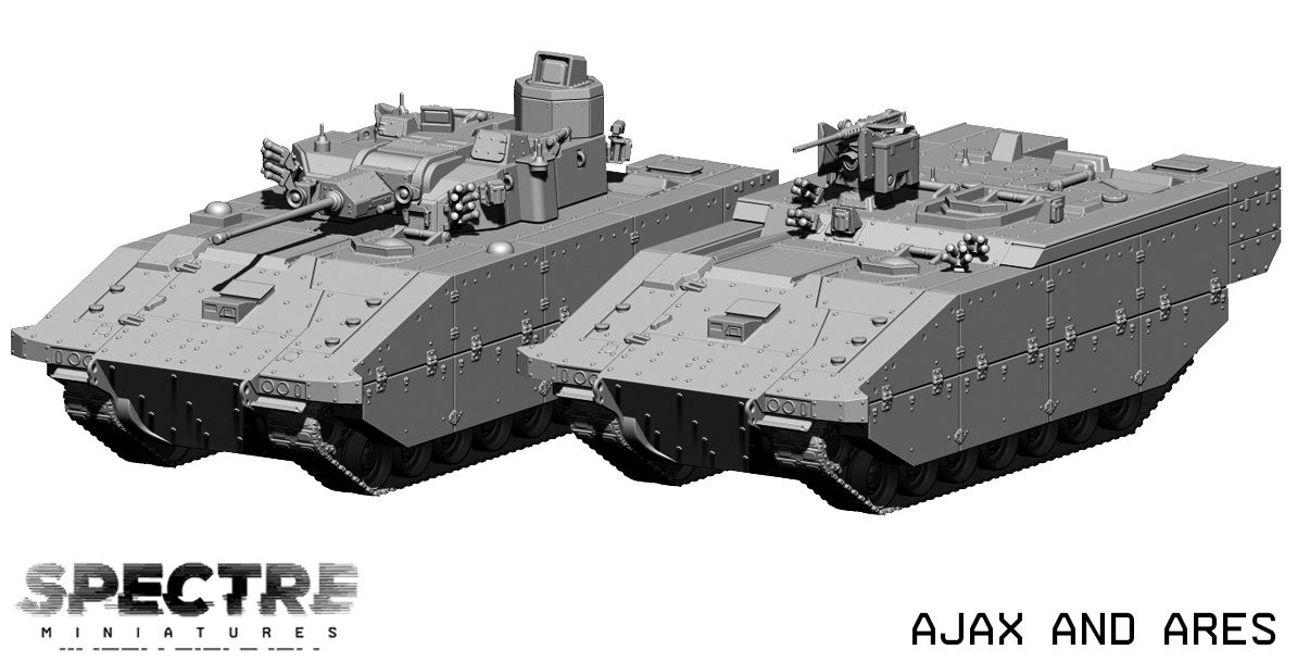 Meanwhile, over on Patreon, this month’s vehicle release is going to be something a little bit shaky. Managing to beat MOD procurement, Spectre is going to be releasing both the Ajax IFV and the Ares APC as STL releases, before a wider release soon after. These vehicles will also be coming with the side stowage boxes that appear on some examples, giving a suitably modern (although some would say near-future or paper prototype depending on your mood) vehicle to accompany the currently released British Infantry Platoon. Next month will add even more British equipment, as the Boxer and potentially Challenger will be coming to Patreon then.