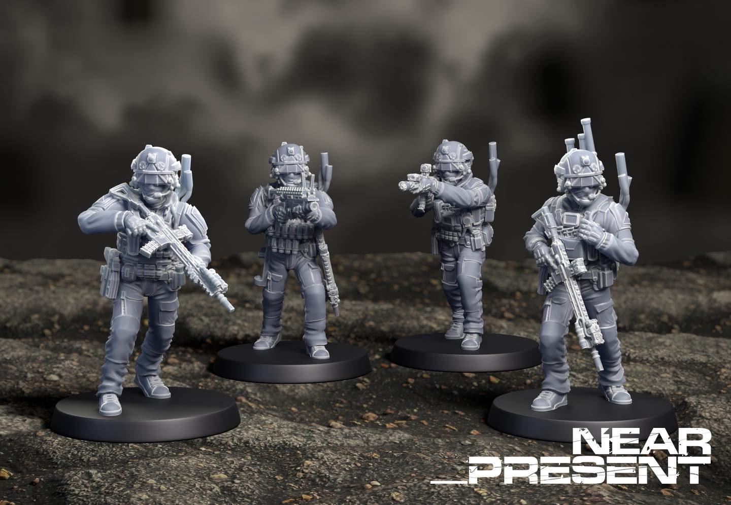 Echelon Software, makers of BPRE and NearPresent, have shown off the first renders of their upcoming Anchorage Multi-Function Response Team set. Providing the infantry figures for one of the two factions in the NearPresent game, Anchorage are the US-backed mercenaries, complete with updated versions of familiar weapon systems suitable for the battlefield of 2046. The four figures show the various classes in the game and are designed to operate alongside the previously released HOUND CCT when fighting Hankou through fortified bases. This is just the initial look, but we’ll be getting more details soon (along with details on figures for the opposing forces).