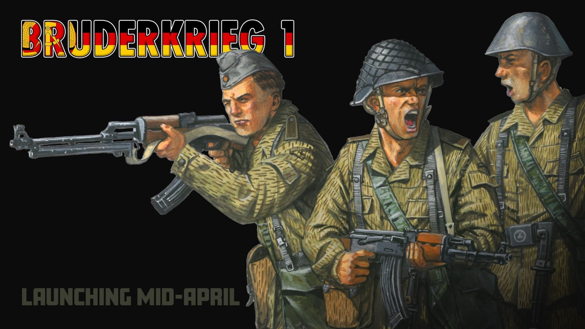 Flank March Miniatures has released the Kickstarter page BRUDERKRIEG 1, the next project to expand his Cold War range. As you might guess, BRUDERKRIEG 1 brings the forces of East Germany to the table and in the usual Flank March way – a complete platoon with over 100 infantry figures, heavy weapons and even more. This time he’s threatening us with a terrifying new vehicle as well, but is also bringing several elements of the East German forces through the 27 different stretch goals – Mot.-Schützen (mechanised infantry), Fallschirmjäger (elite paratroopers) and the takes a deep breath Kampfgruppen der Arbeiterklasse (a paramilitary militia/reserve force). We don’t have an exact kick-off date (other than Mid-April), but the Kickstarter project page is now open and ready to sign up for.