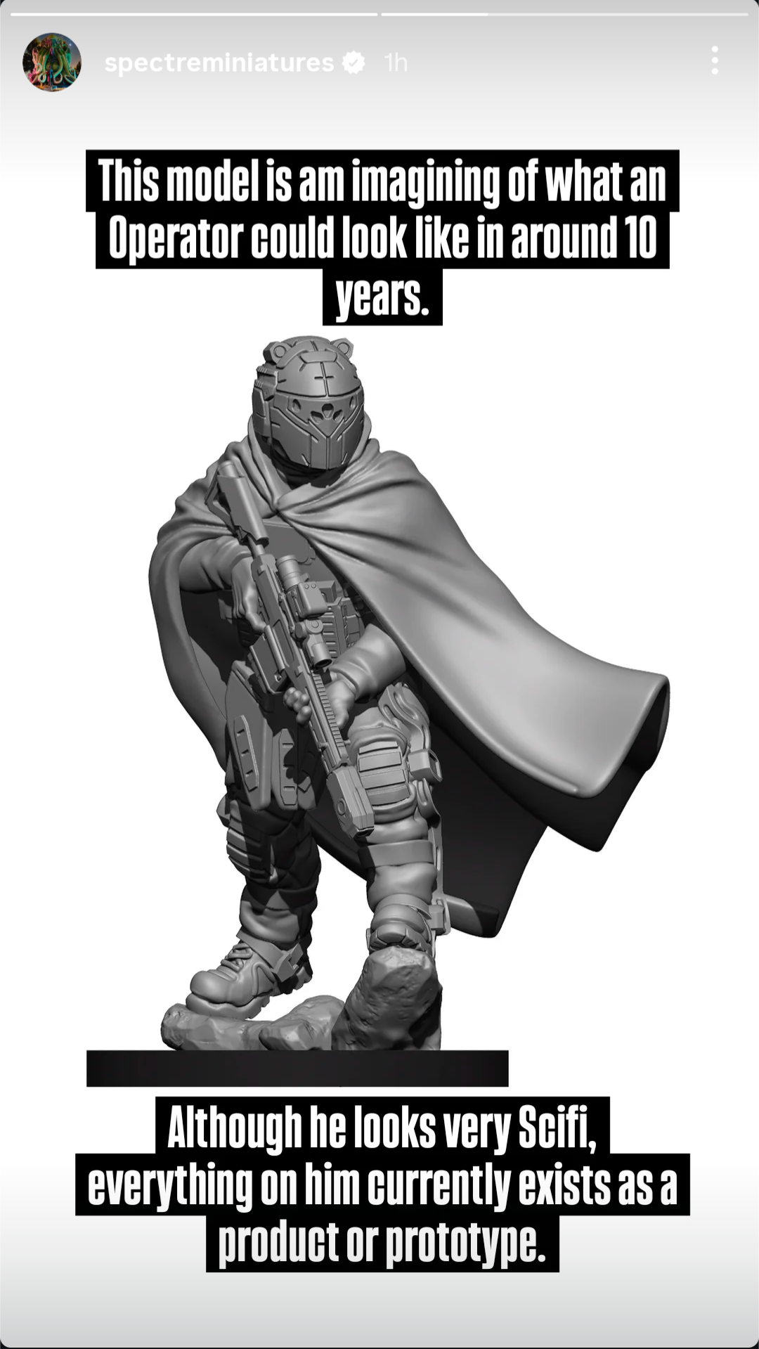 However, thanks to the Spectre stories on Facebook and Instagram, we got a glimpse at one of the limited edition models – a Near Future Operator. Designed to be a possible operator from about 10 years in the future, this guy has a collection of equipment pieces that are prototypes or limited use as we speak – the Eagle Eye Helmet from Anduril, a powered exoskeleton on the legs, the FN MTL-30 Tactical launcher with a mounted MFMD style muzzle device and more. This is definitely one of those unique Salute exclusive figures that you can tell the sculptor had a lot of fun with.