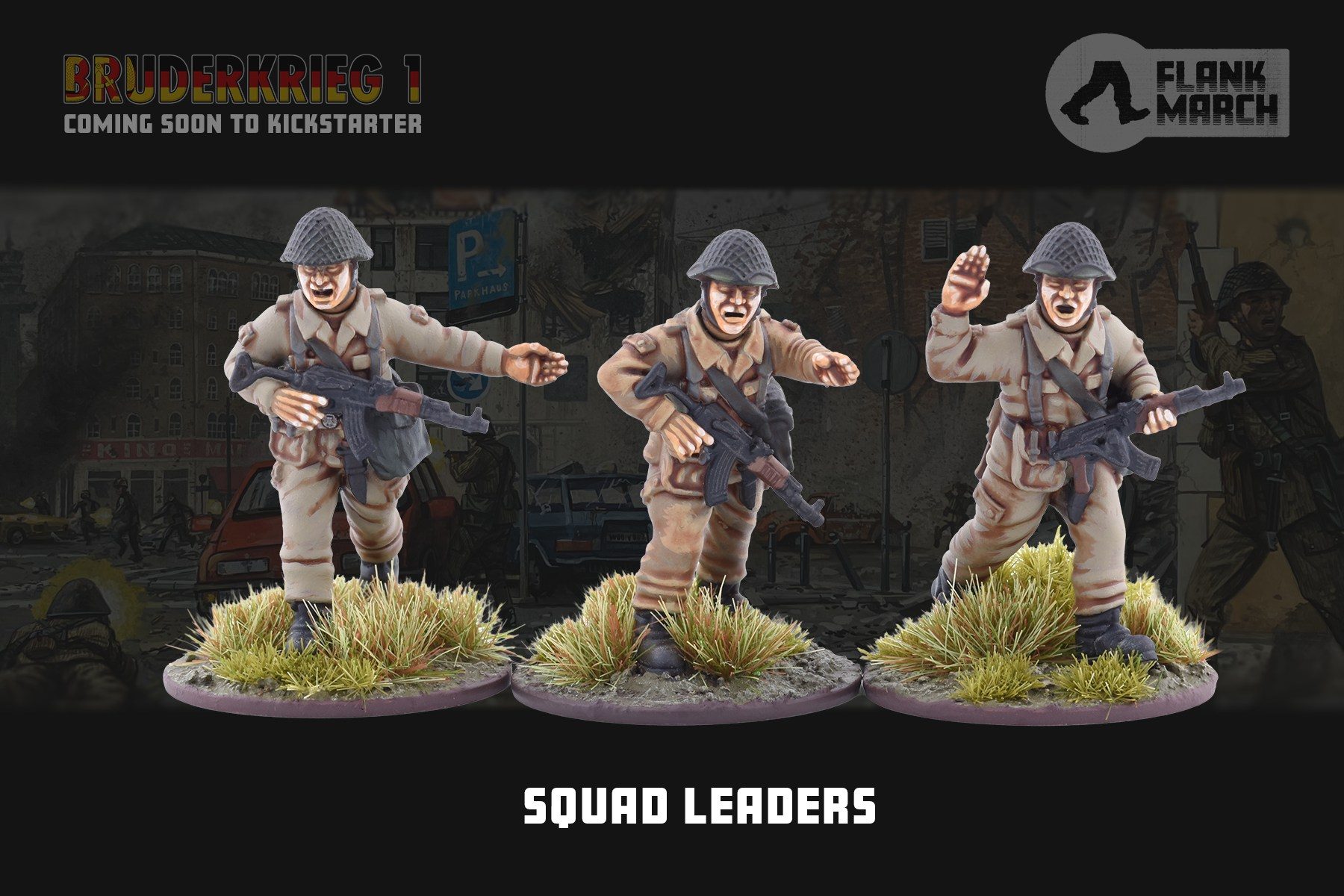Flank March Miniatures is preparing for the final run into Salute and has announced more details on what you’ll be up to if you find their stall at Salute. Following on from last year’s push into Berlin by the Soviets, it seems the elite of the East German army are preparing for a daring raid on the Tempelhof airport in the Western Sector. Seeing as this year’s digital model for Salute is a pair of bailed out US Tank Crew (and the Americans had a major presence there) it’s safe to say the Americans are about to have from visitors from the East. This game will also be a chance to see the upcoming East German figures and Fallschirmjรคger head options that will be coming as part of the BRUDERKRIEG 1 Kickstarter.